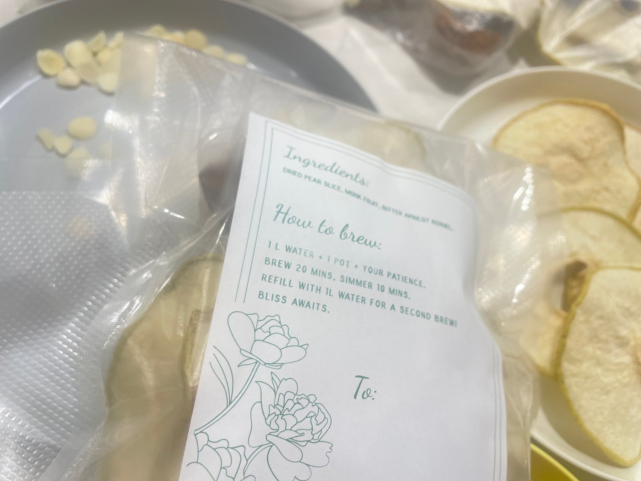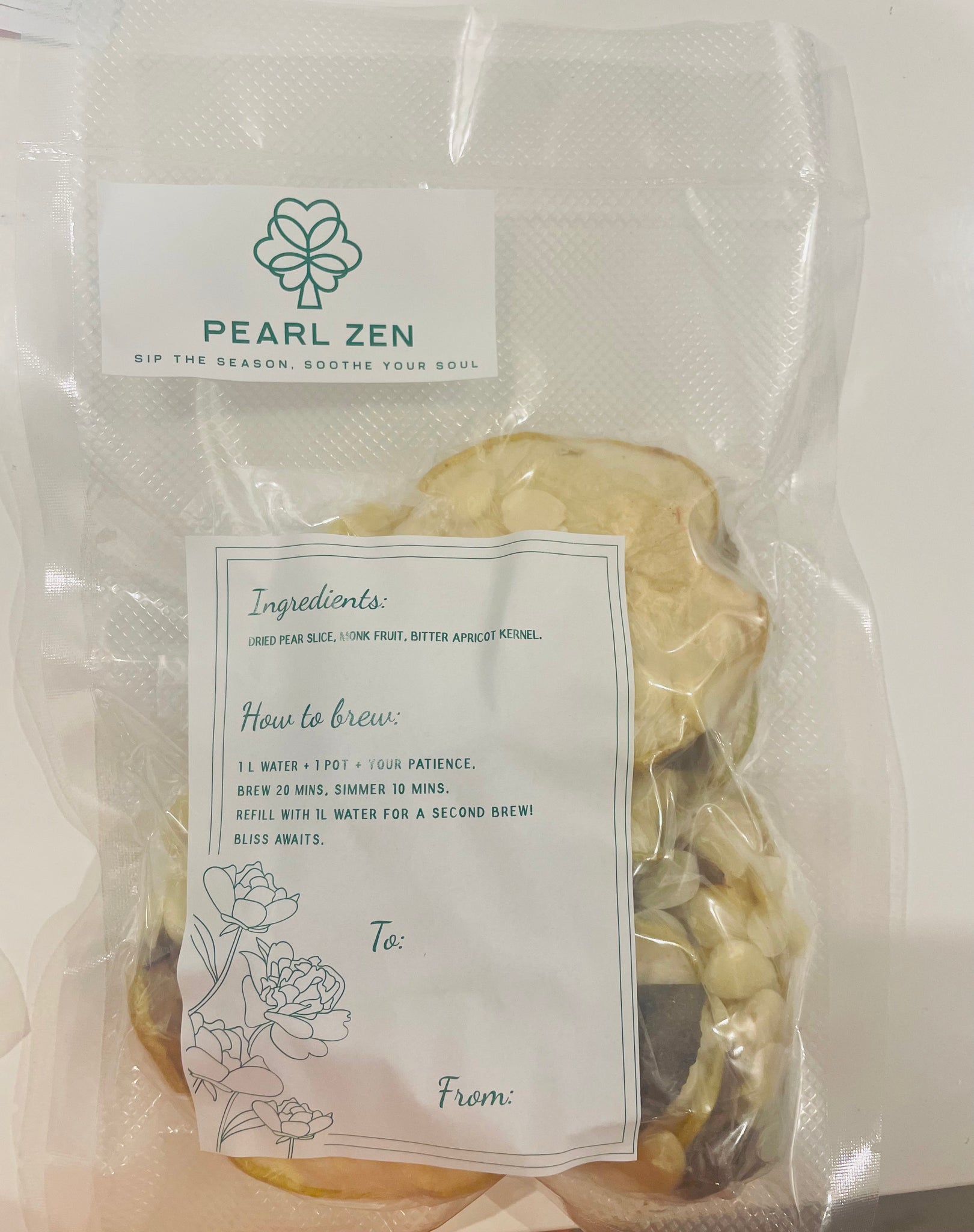 Dried Pear Slice, Monk Fruit, Bitter Apricot Kernel.